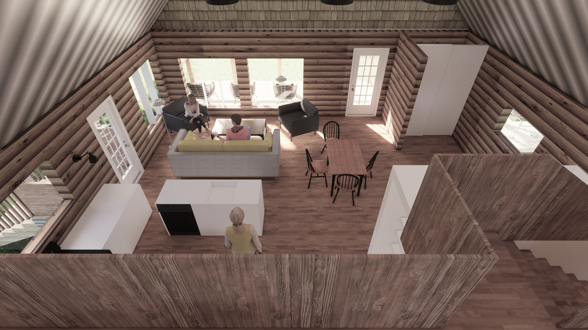The Coulter Cabin is an old cabin that a family bought that needed a renovation. This cabin is located in the mountains of North Carolina, surrounded by forest. Along with an overall renovation, an expansion and floor plan redesign were needed to create a feel of spaciousness in this small cabin.